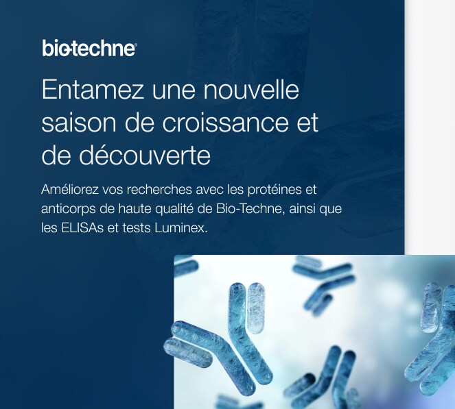 Chez Bio-Techne™, nous associons la qualité de R&D Systems™ et Novus Biologicals™ pour vous proposer des solutions de pointe pour votre recherche. Profitez de notre remise de 20 % sur les protéines, anticorps, ELISA, tests Luminex et le lecteur de plaques ELISA Simple Reader™ pour obtenir des résultats fiables et reproductibles sans dépasser votre budget. Approuvés par les chercheurs du monde entier, nos produits garantissent le bon déroulement de vos recherches. Faites le plein dès aujourd’hui et poursuivez vos travaux en toute confiance !