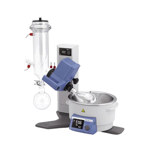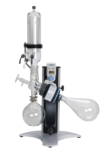 Un évaporateur rotatif élimine en douceur les solvants volatils en faisant tourner un ballon dans un bain chauffé sous pression réduite. La vapeur de solvant est ensuite condensée et collectée pour être réutilisée ou éliminée. Les systèmes Buchi, Heidolph, IKA et Stuart associent un chauffage contrôlé, la rotation et le vide afin d’assurer une élimination des solvants efficace et reproductible.